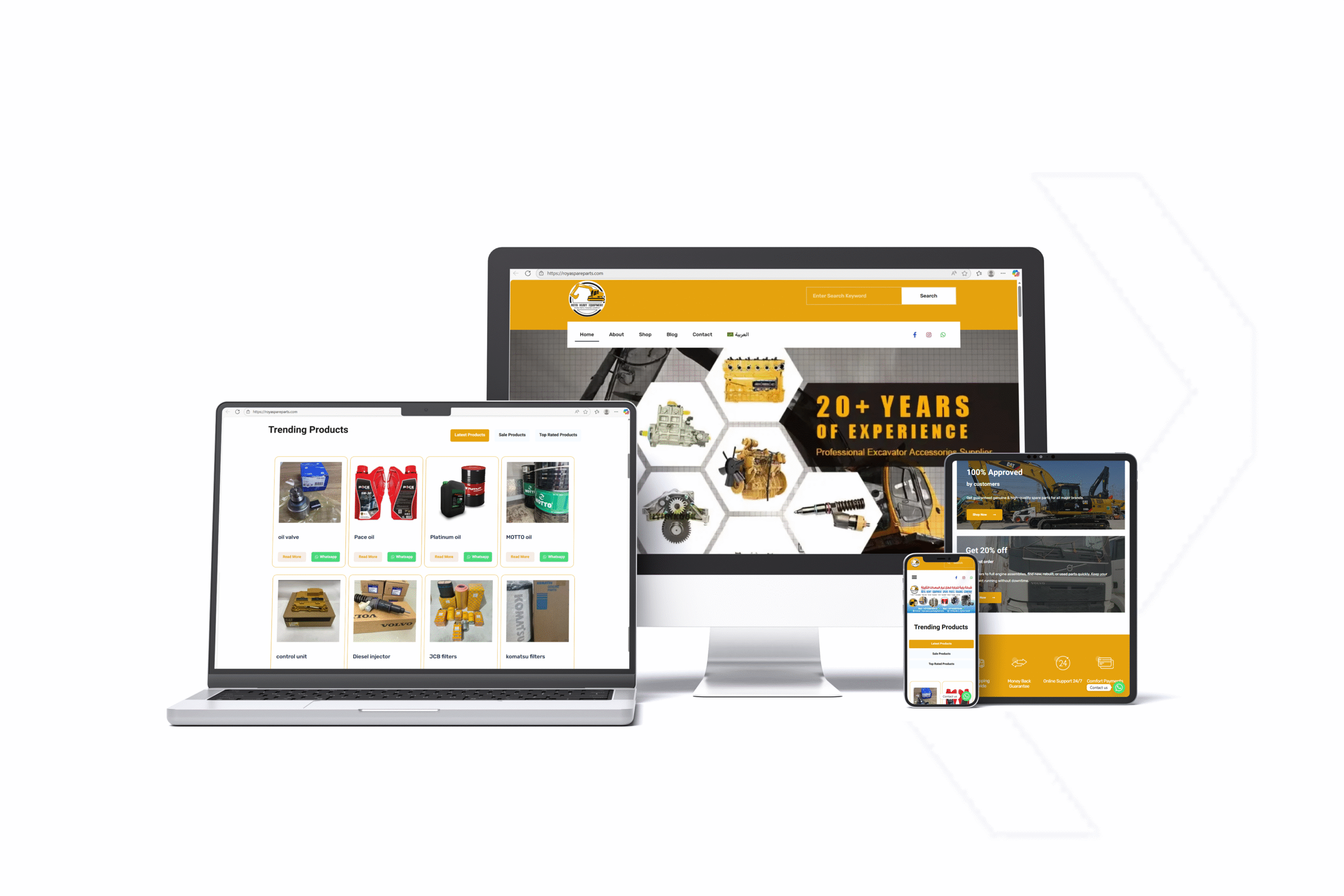 "موقع تجارة إلكترونية للسيارات متجاوب بالكامل مبني على ووردبريس، يعرض قطع الغيار والإكسسوارات بتصميم واجهة نظيف، تنقل سلس، وتجربة تسوق محسّنة."